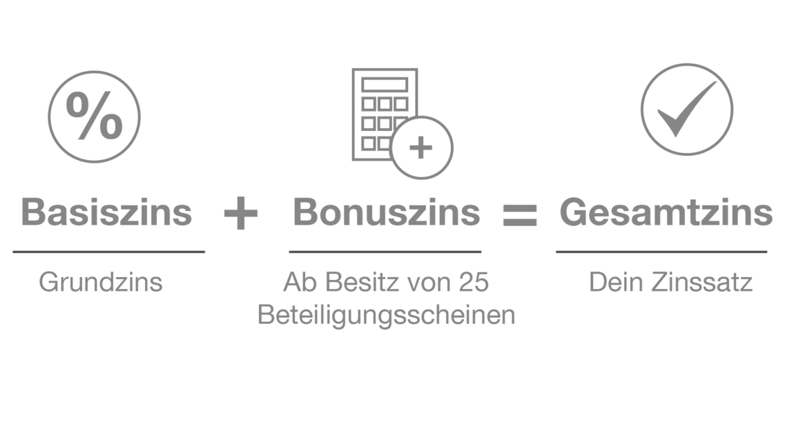 • Ab 25 Beteiligungsscheinen: Zinsbonus